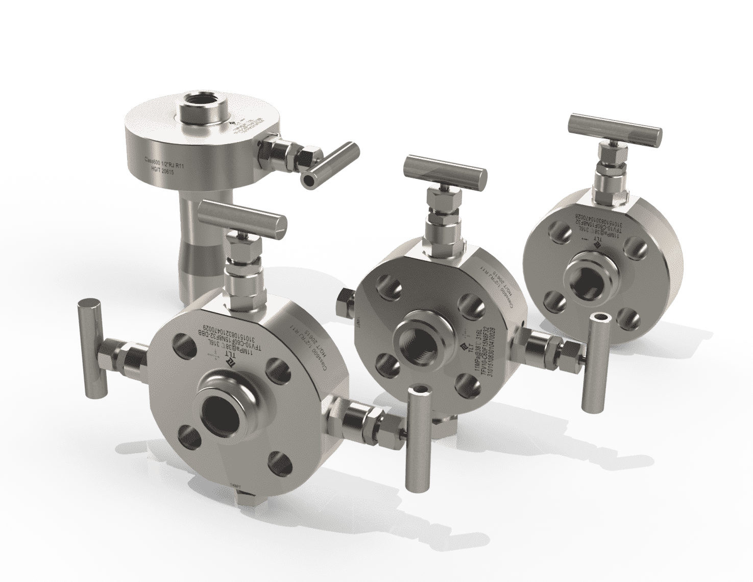 ◆ 主截断阀可选配螺纹连接或螺栓连接。 ◆ 泄放阀出口标配1/4”NPT堵头。 ◆ 标定口与仪表侧接口相同,标配1个堵头。 ◆ 截止阀水平或垂直,可满足现场仪表正向安装。 ◆ 附加要求“-DBB”即为选择DBB结构的法兰截止阀。